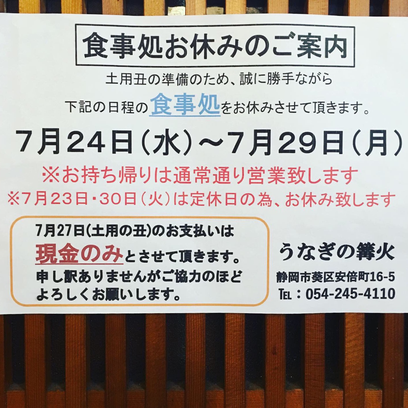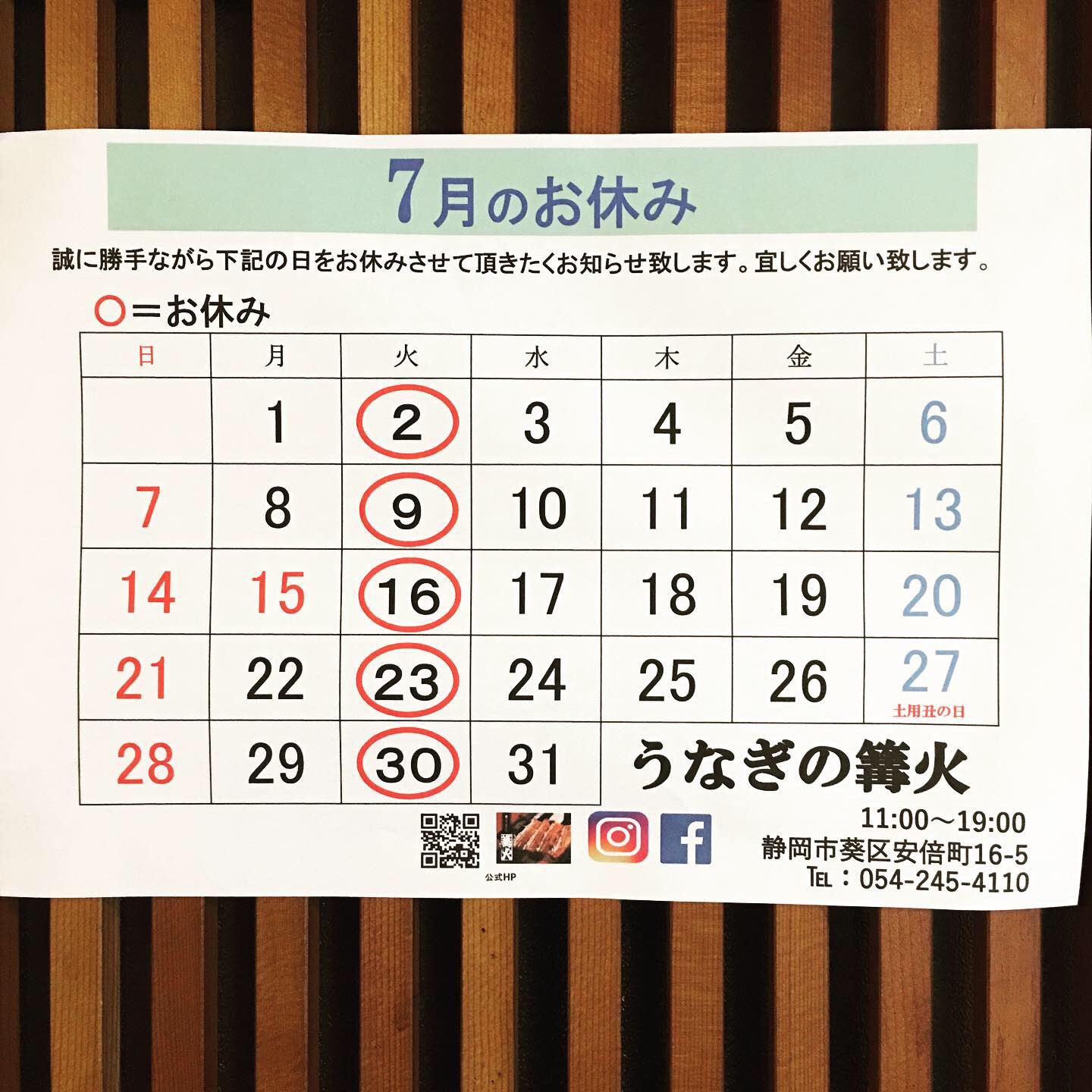 7月23日・30日は定休日(火)の為、お休みいたします。