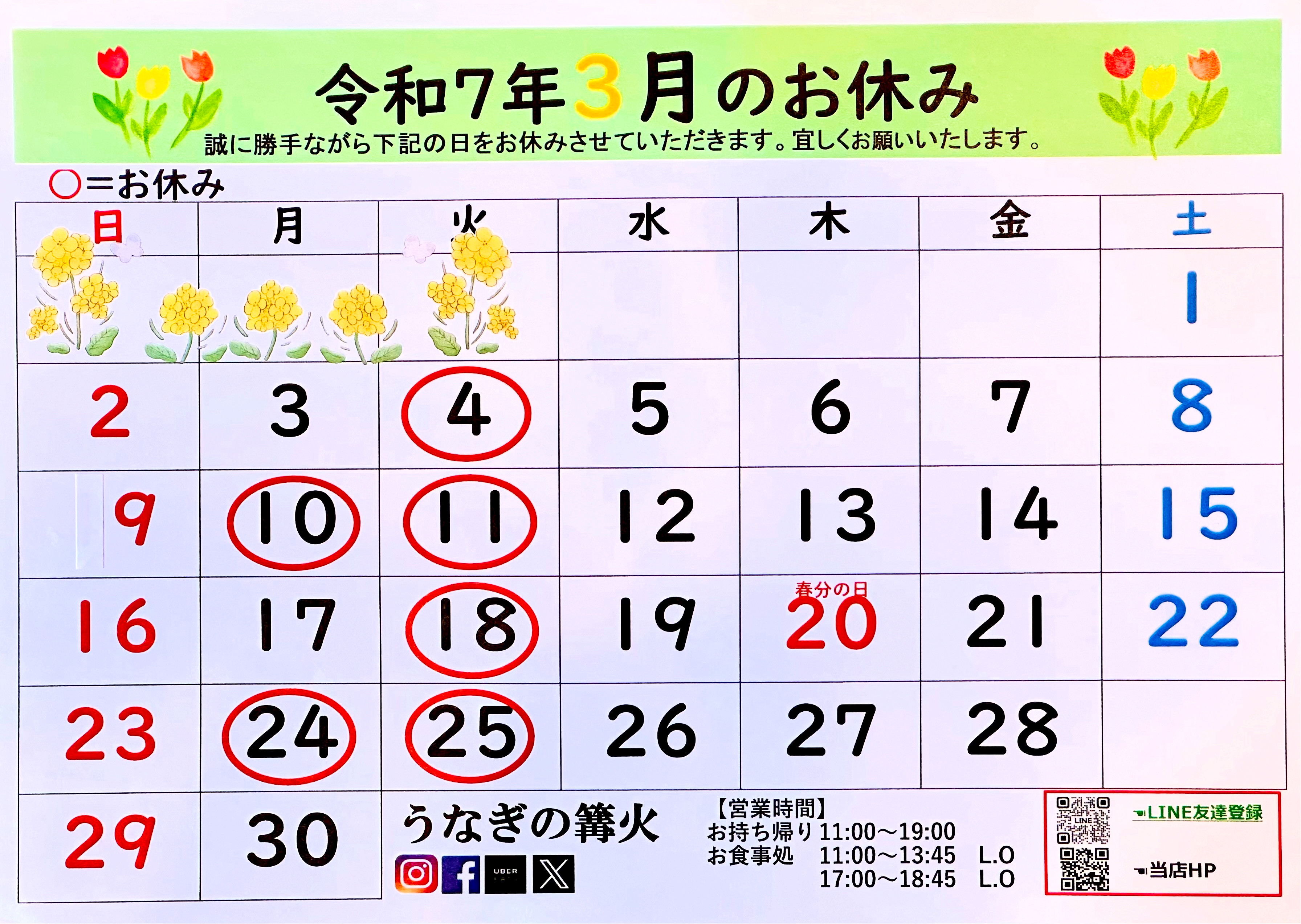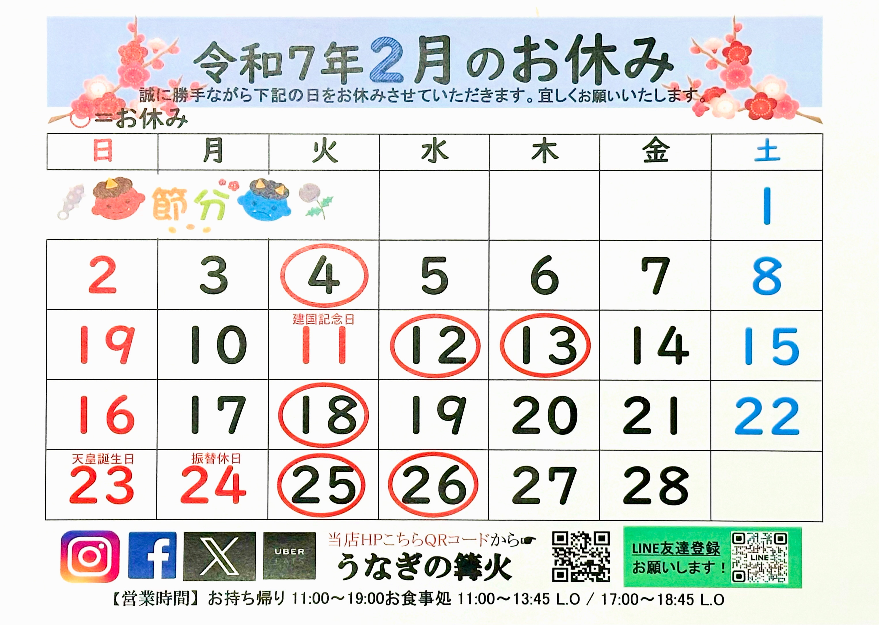 【2月のお休み】